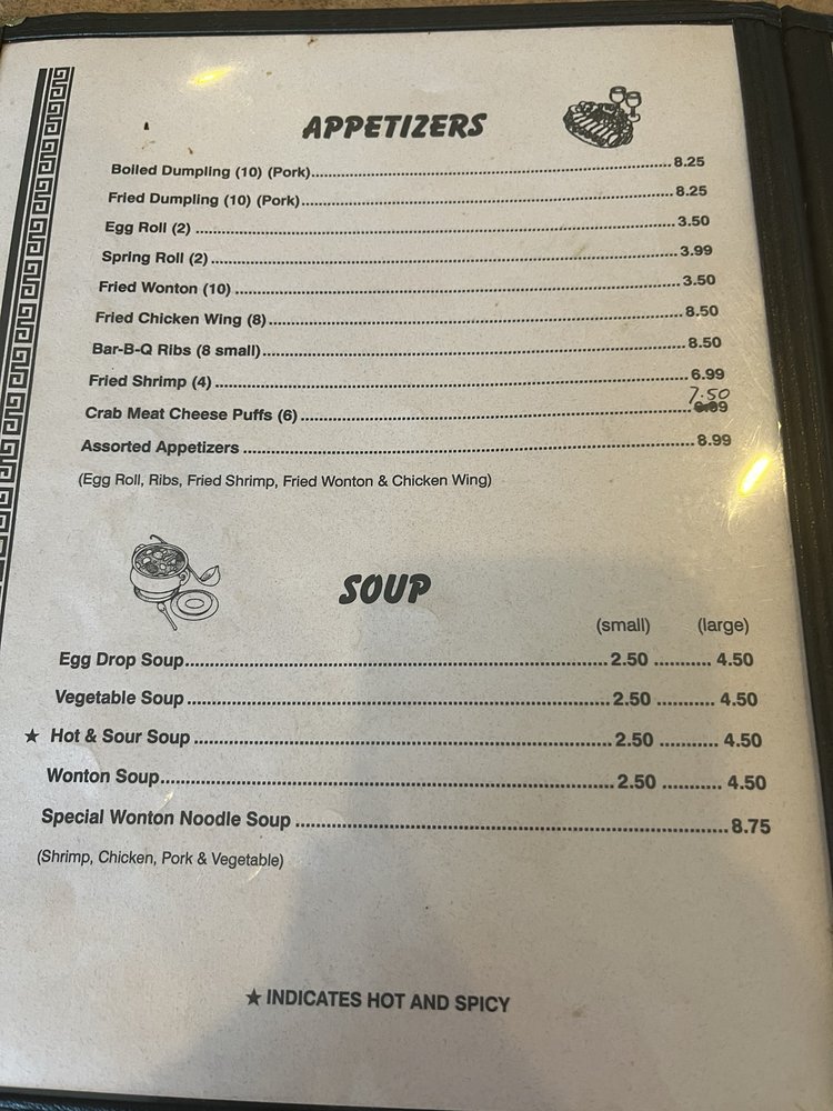 Indicates hot and spicy scallop shrimp, beef and chicken