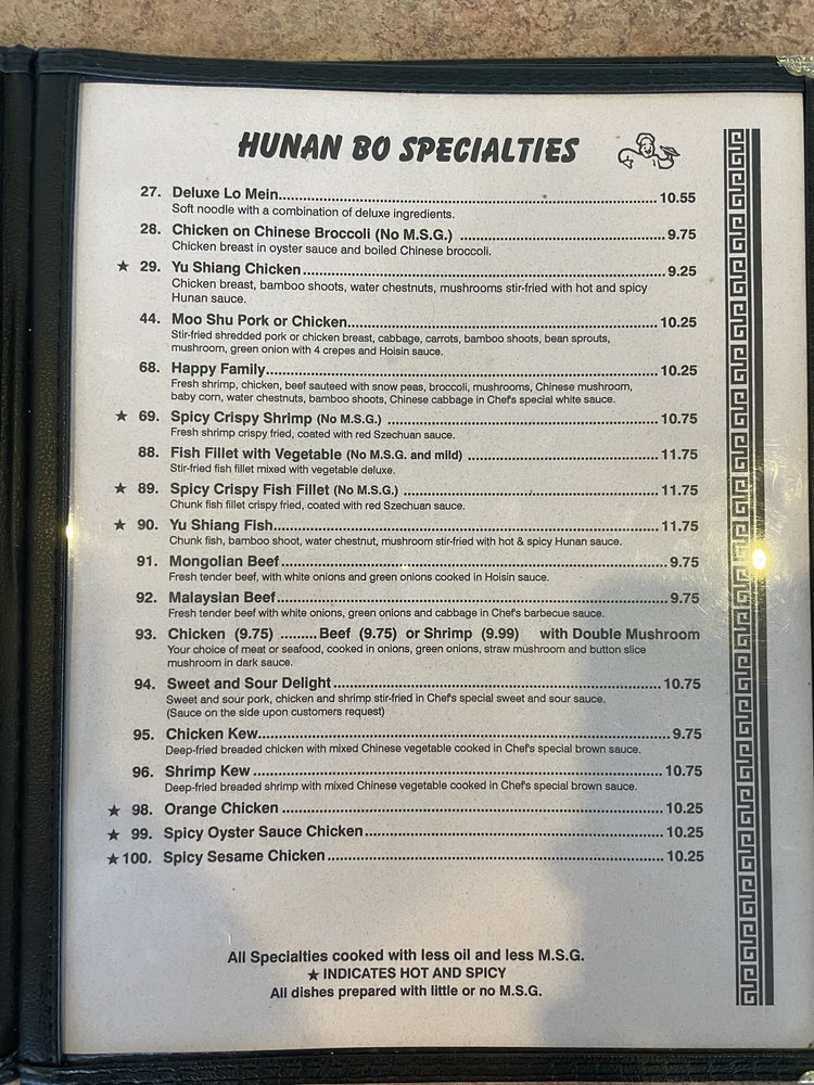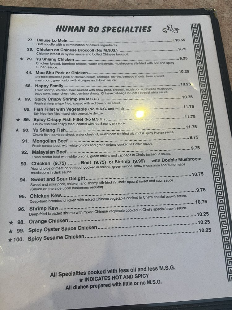 Chef Hunan Bo is a top-rated Chinese restaurant located at 3237 Houston Ave in Houston, TX. Known for its addictive and authentic food, Chef Hunan Bo offers a wide range of options for vegetarians and non-vegetarians alike. Customers rave about the excellent service provided by the friendly staff, making you feel right at home. The menu features popular dishes like Mu Shu, Garlic Shrimp, and Singapore Noodles, all made fresh and served hot. Affordable prices, quick service, and great portions make this spot a favorite among locals. Whether you're dining in or ordering takeout, Chef Hunan Bo is sure to satisfy your cravings for delicious Chinese cuisine. With a quiet and casual atmosphere, this restaurant is perfect for groups, families, or a quick lunch. Don't miss out on this hidden gem in The Heights - a true gem for Chinese food lovers.